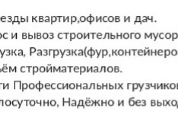 -Переезды квартир, офисов и дач. -Вынос и вывоз строительного мусора. -Погрузка, Разгрузка(фур,контейнеров).
