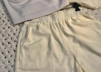 Комплект тройка: костюм из льна молочного цвета (с биркой) и корсетный топ от love republic белого цвета. Состояние отличное.