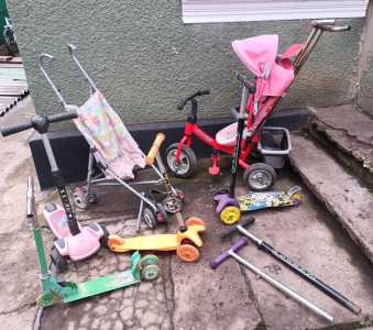 Самокаты, вело, коляски, детские. Б/у. ЦЕНА ЗА ВСЁ, ЧТО ЕСТЬ НА ФОТО. Что-то в отличном состоянии.