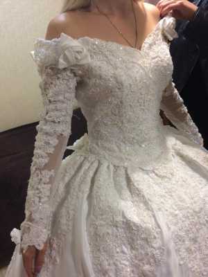 В хорошем состоянии. Одевалось один раз. Чистился только шлейф( в хим чистке).