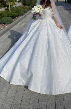 Свадебное платье покрыто очень красивыми и нежными бусинами, которые сверкают на солнце Платье надето естественно один раз...