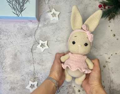 Зайка в платье. Выполнен из гипоаллергенной пряжи yarn art jeans. Наполнитель холлофайбер, глазки на безопасном креплении.