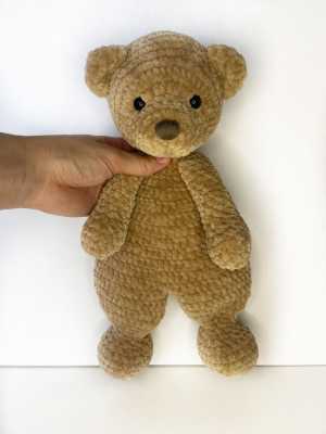 Комфортер мишка, связан из гипоаллергенных плюшевой пряжи, производство Турция. Все детали надежно ввязаны и пришиты.
