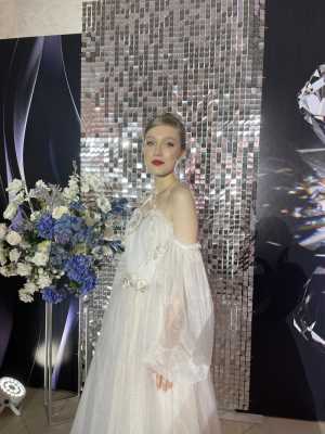 Продам платье свадебное(на выпускной) в пол.Цвет:кремовый.7 юбок.Рукава съёмные.Отличное состояние,одела один раз.