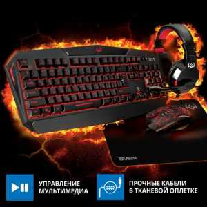 Игровой набор Свен. Наушники клавиатура с подсветкой мышка игровая с подсветкой и коврик в подарок