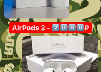 Airpods 2. Хороший звук, двойной тап, сири, датчик уха. Комплект :зарядка, кейс с наушниками, инструкции.