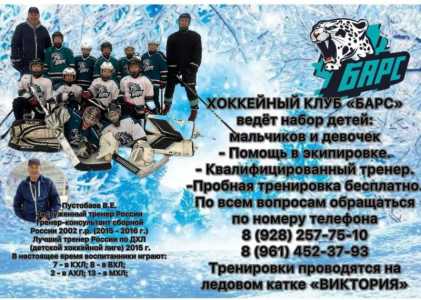 Хоккейный клуб "Барс" ставрополь ведет набор детей -помощь в экипировке -Тренировки проводить квалифицированный тренер...