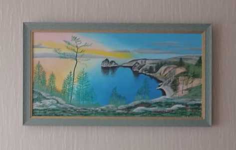 Продам картину - Восход на Байкале 80х40 см холст на подрамнике, масло, багет.