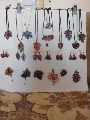 Эксклюзивные украшения из листьев деревьев, цветов и др. натуральных материалов покрытые чистой медью путем гальванопластики.