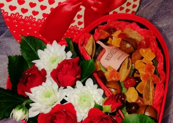 Сердечко с сухофруктами(зелёный и красный манго, ананас, курага, финики, папая, вишня) , орешками (мендаль, макадамия...