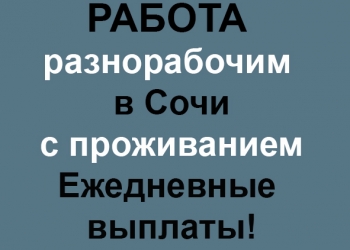 Работа разнорабочим в Сочи. ---------- Проживание со всеми удобствами. ---------- Трех разовое полноценное питание.
