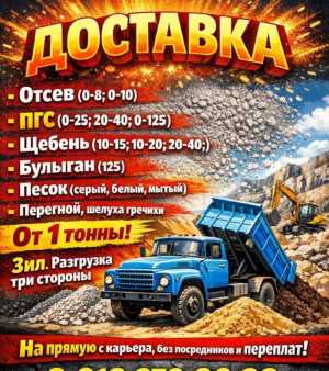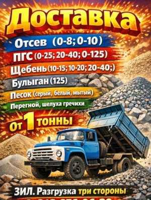 Щебень разных фракций ЗИЛ-сельхозник разгрузка на три стороны Песок, пгс, отсев, перегной, шелуха гречихи