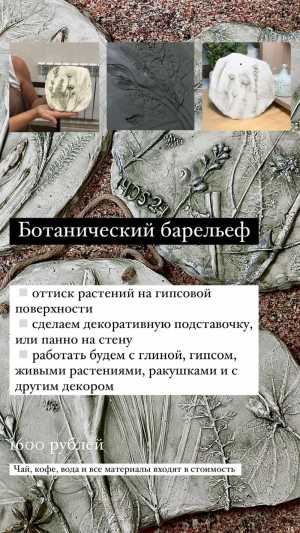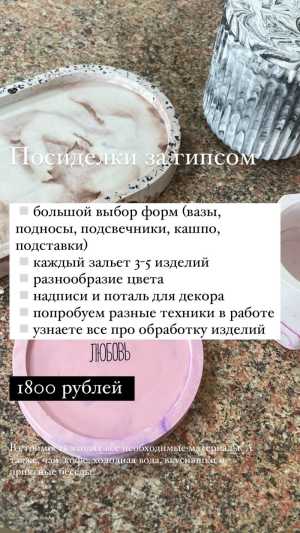 На выбор большое разнообразие форм (подсвечники, кашпо, вазы, подносы), попробуем разные техники в работе.