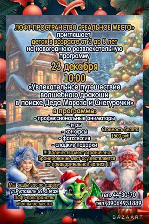 Приглашаем ваших деток, в возрасте от 3 до 8 лет посетить новогоднее развлекательное мероприятие, которое пройдёт в...
