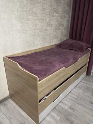 Деревянная детская кровать из чистого дерева.С вместительным ящиком для белья.