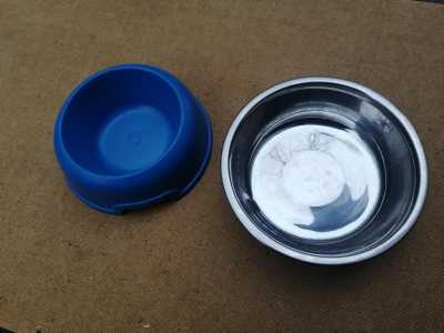Миски для кошек, 2-штуки, хорошего качества. Пластиковая и нержавейка с обрезиненным дном. Отличное состояние.